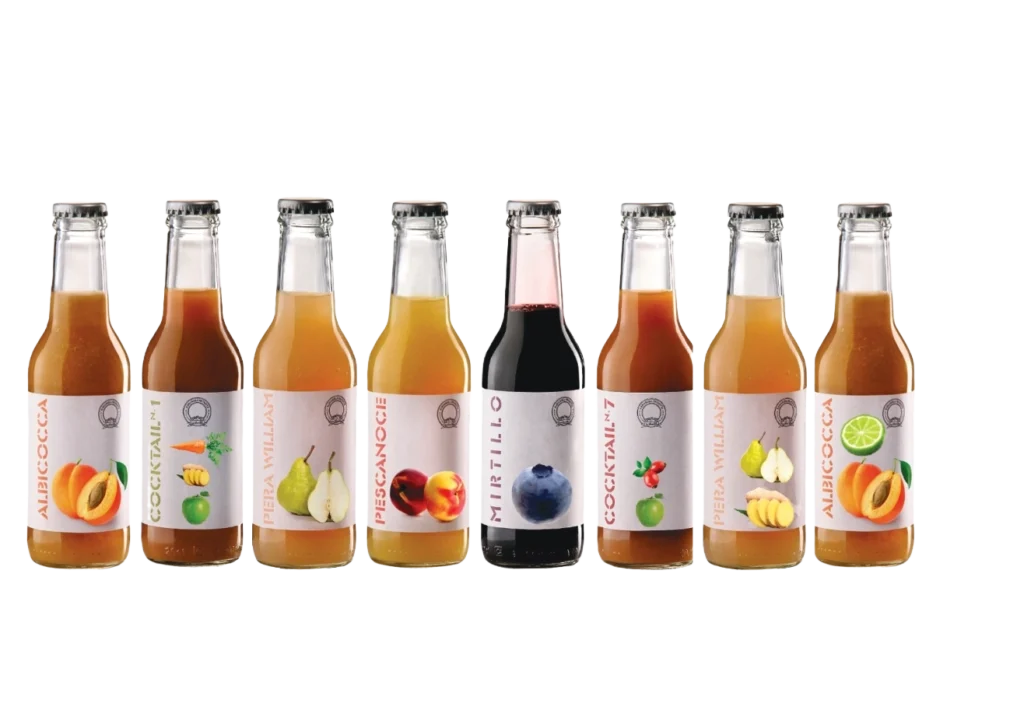 I nostri succhi, realizzati esclusivamente con frutta e verdura freschissime, sono perfetti da gustare tutto l’anno e ideali per dissetarsi d’estate. Offriamo una linea completamente senza zuccheri aggiunti, con solo il sapore naturale del frutto, e una variante con una lieve aggiunta di zucchero di canna per chi lo preferisce. La loro consistenza ricorda quella di un frutto fresco appena colto. Gli infusi, freschi e aromatici, sono ottimi da bere freddi, per un’esperienza leggera e rigenerante.
