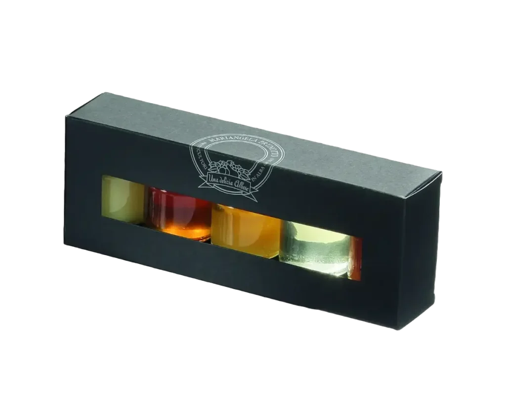 Le nostre confezioni regalo sono pensate per chi ama scoprire sapori autentici e fare doni originali. Offriamo eleganti degustazioni di piccoli mieli, composte dolci e salate, perfette per ogni occasione. Inoltre, quello per cui siamo conosciuti, sono i nostri unici grandi vasi da 5 kg di frutta sciroppata, racchiusi in una raffinata scatola regalo logata: un dono scenografico, generoso e indimenticabile.